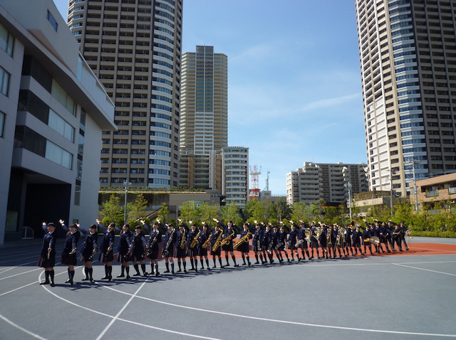 ブラスバンド部という名称で伝統を受け継いでいる私たちの部は、1940年代に創部され、陸軍軍楽隊の教官に指導を受けつつ育ち、当時神奈川県内の女子スクールバンドとして最も古くに設立されました。「練習厳しく、本番楽しく」をモットーに毎日厳格な練習を重ね、吹奏楽コンクールでは、神奈川県の代表として